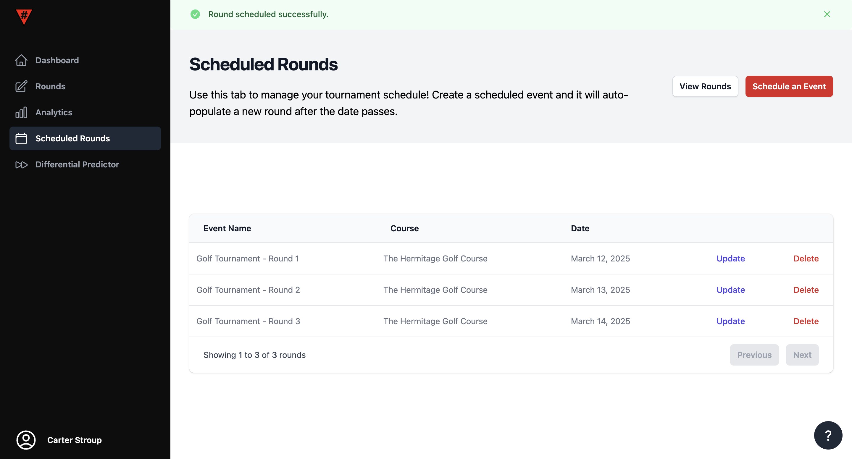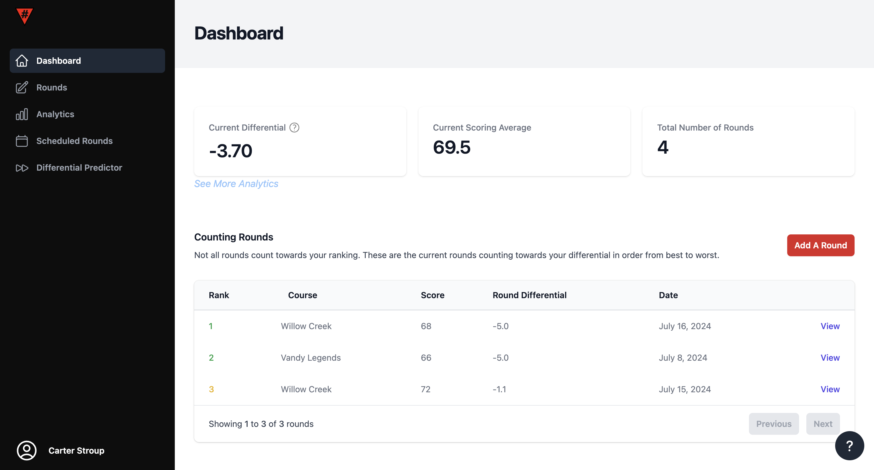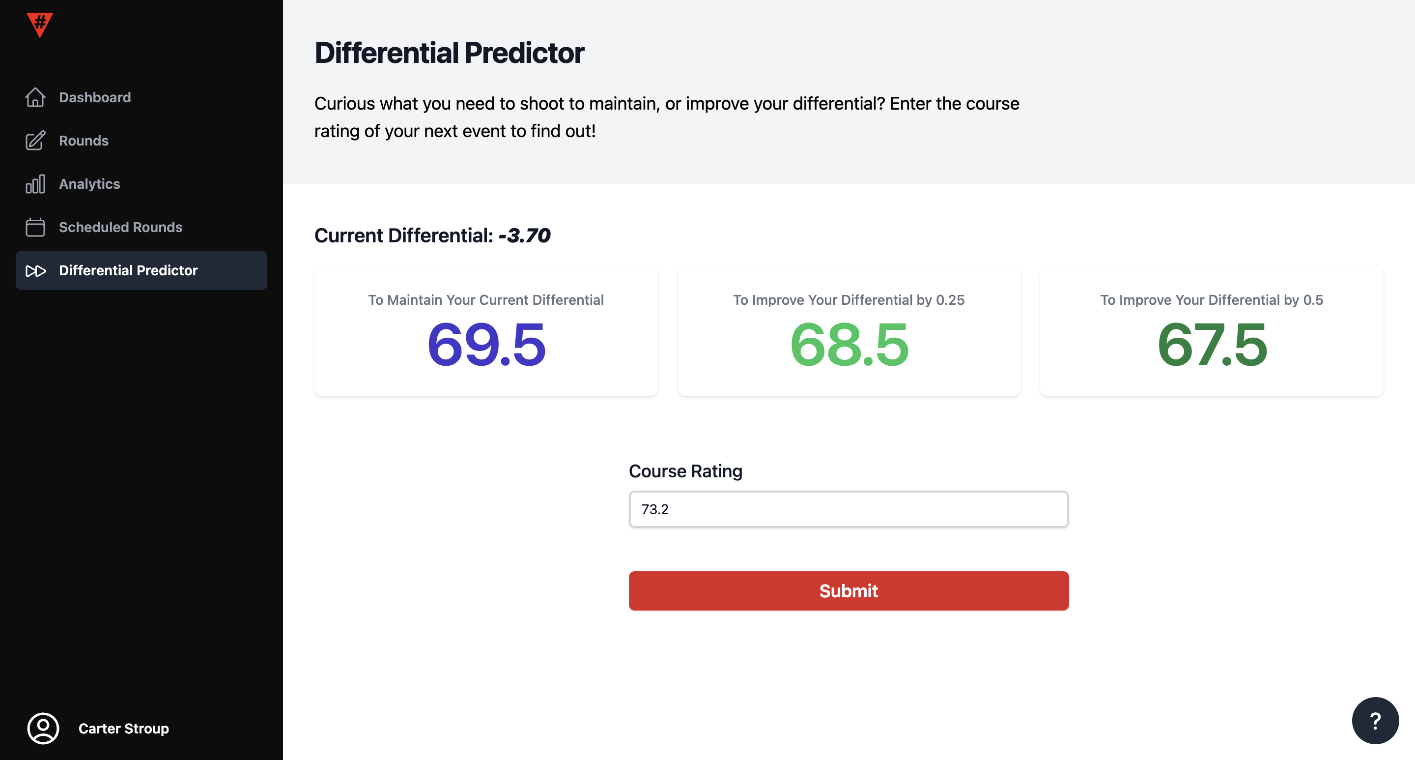 James Eickhoff, a dedicated parent of an elite junior golfer, found himself navigating the competitive landscape of junior golf rankings, where national standings are critical for tournament entry and college recruitment. While helping his son optimize performance, James reverse-engineered the differential formula—a crucial metric in junior golf rankings—and developed a feature-rich spreadsheet for performance tracking and statistical insights. Recognizing the potential value for other parents, he aimed to transform his spreadsheet into a more sophisticated, user-friendly tool. This led him to collaborate with Carter Stroup to bring the project to life.
