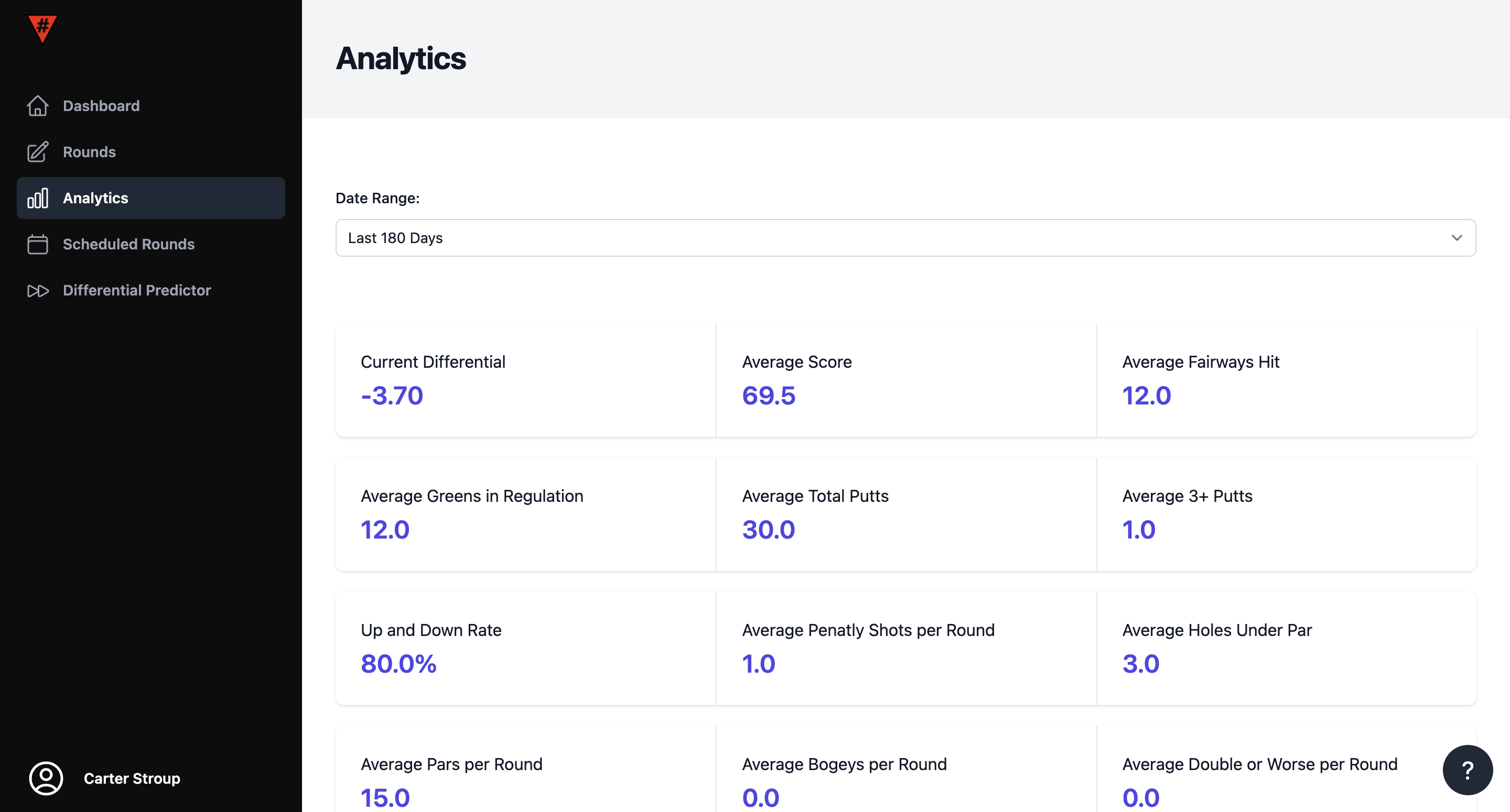 The final product received enthusiastic feedback from stakeholders. The application achieved an average response time of 100ms, demonstrating impressive efficiency and speed. During beta testing, user satisfaction was high, with no significant bugs reported. The Differential Junior Golf app has become a valuable tool for parents and junior golfers, combining ease of use with the precision and depth needed to track and improve competitive performance.